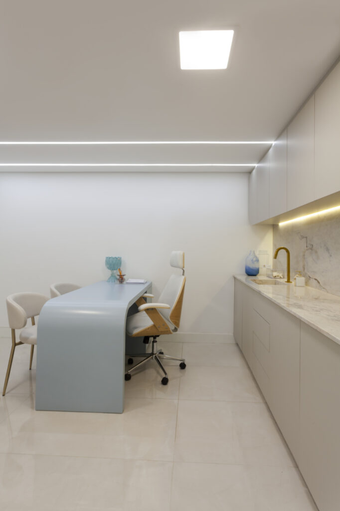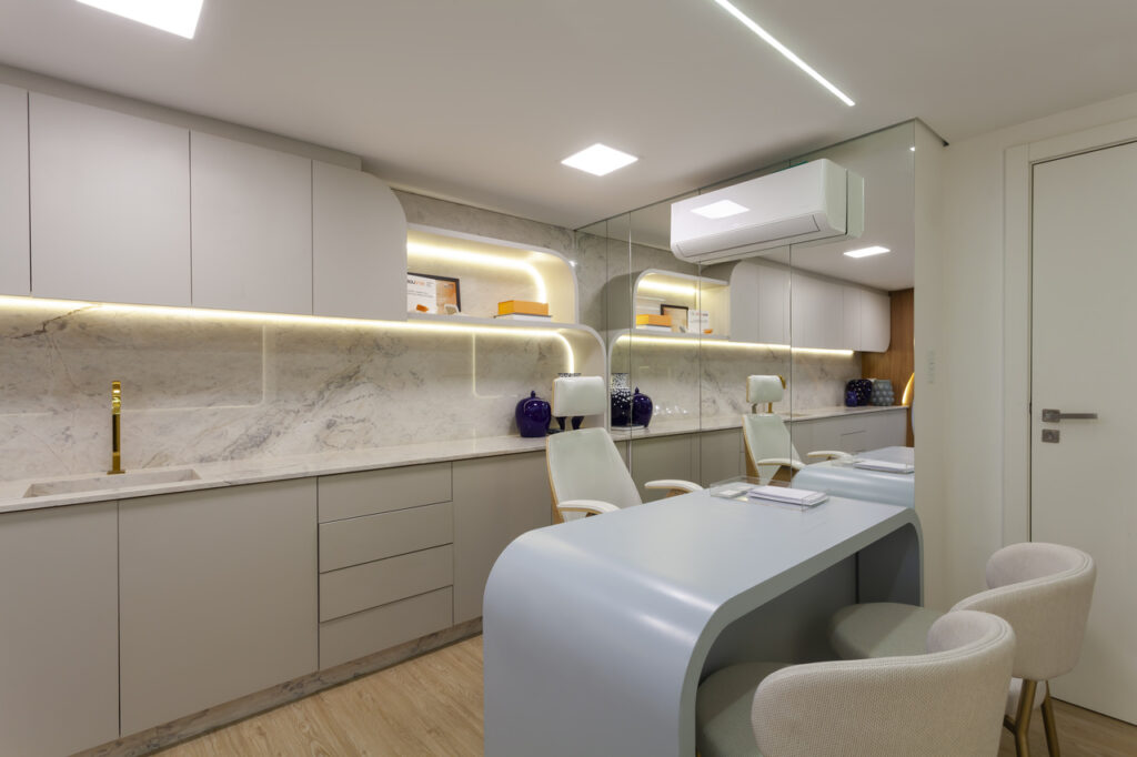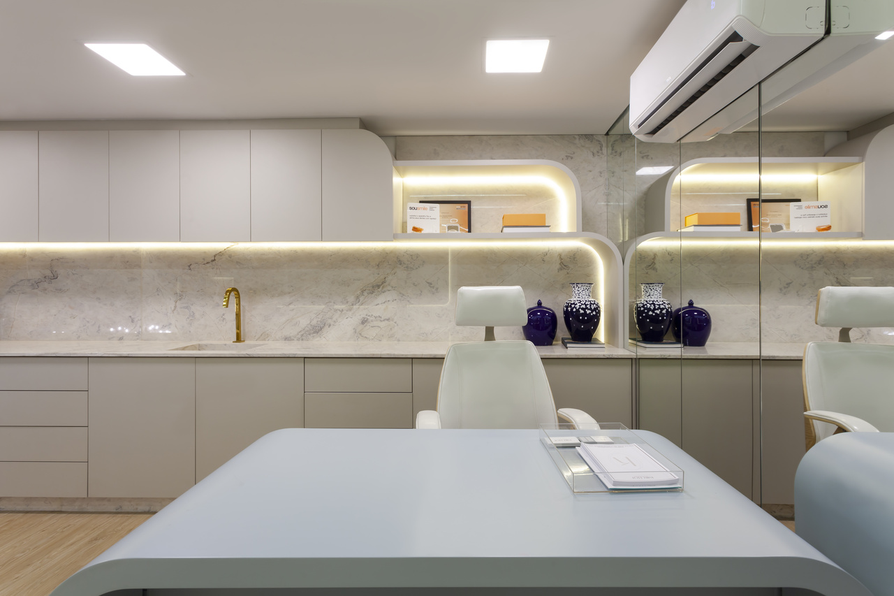 Neste projeto para a Clínica Estética Odontológica Kirchoff, desenvolvi um espaço que une sofisticação, acolhimento e identidade marcante. A proposta valoriza formas orgânicas e iluminação indireta para criar uma atmosfera contemporânea e elegante, transformando a experiência do paciente desde a recepção.