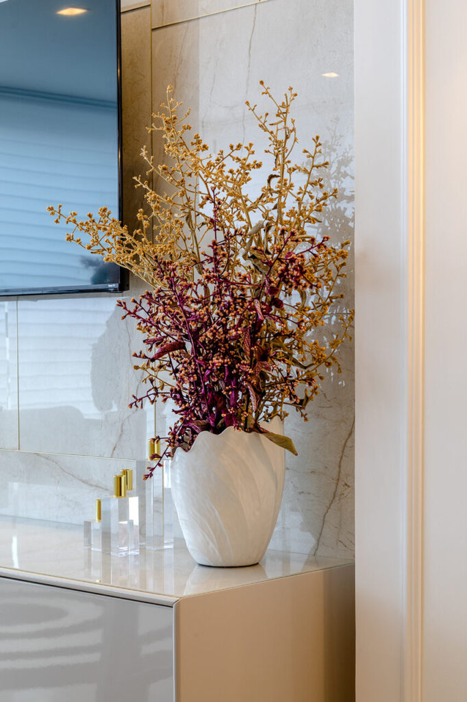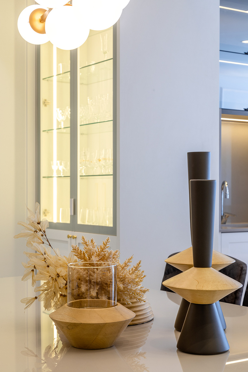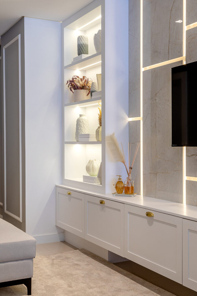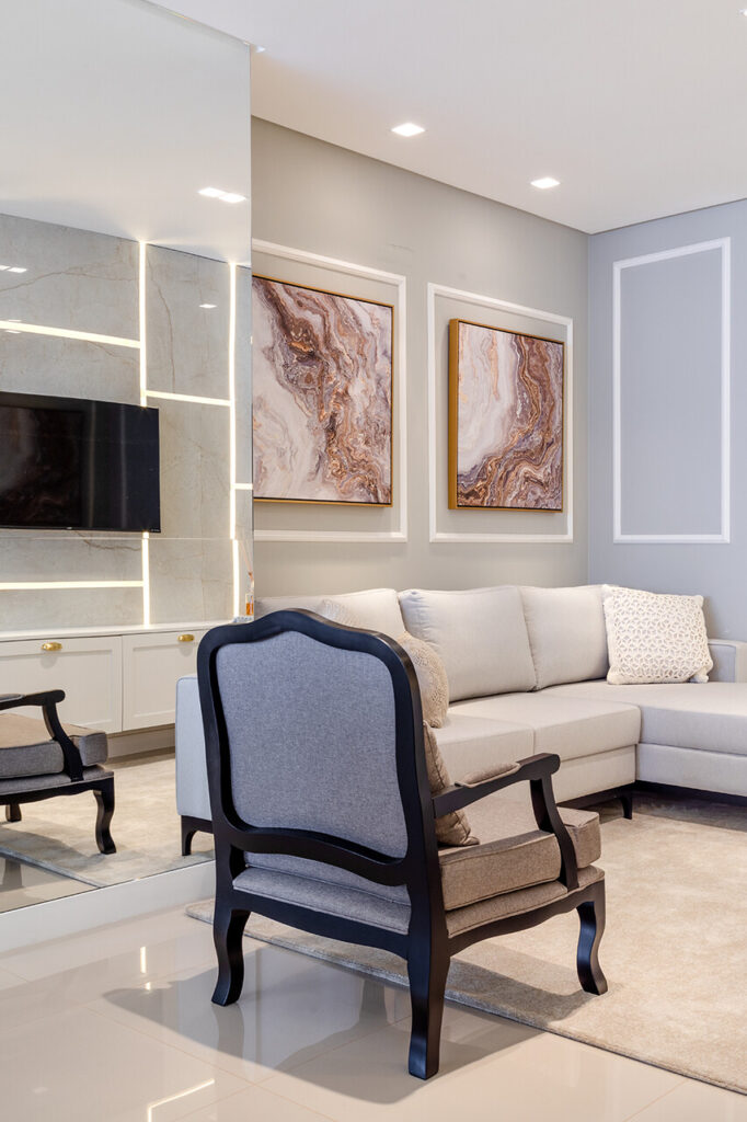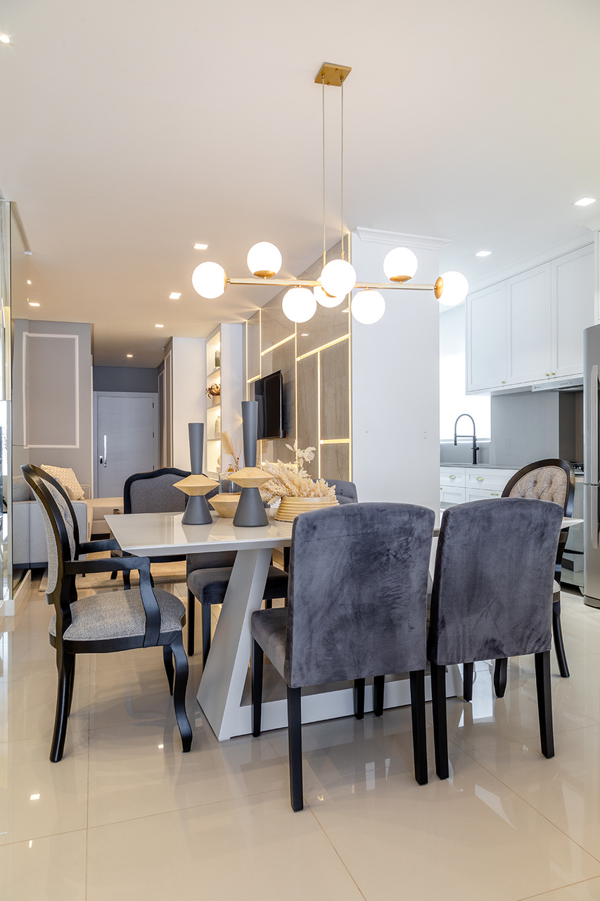 Apartamento localizado no edifício Bosco Verticale, projeto esse assinado pelo escritório. A residência segue o estilo neoclássico como preferência do proprietário, porém, há o contraponto de outras vertentes para conferir autenticidade ao projeto. Destaque para a sala de estar que age como ambiente de entrada, onde tem-se os boiseries de um lado e o home trabalhado em assimetria utilizando-se de porcelanatos e lighting design.