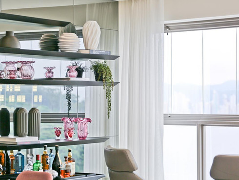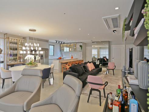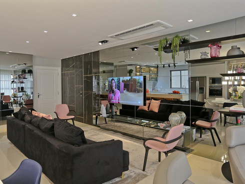 De frente para o mar, com vista para o horizonte, encontra-se este apartamento. Os elementos claros e translúcidos misturam-se aos espelhos que trazem amplitude e sensação de bem estar para uma família que busca no lar um refúgio de muita paz e tranquilidade.